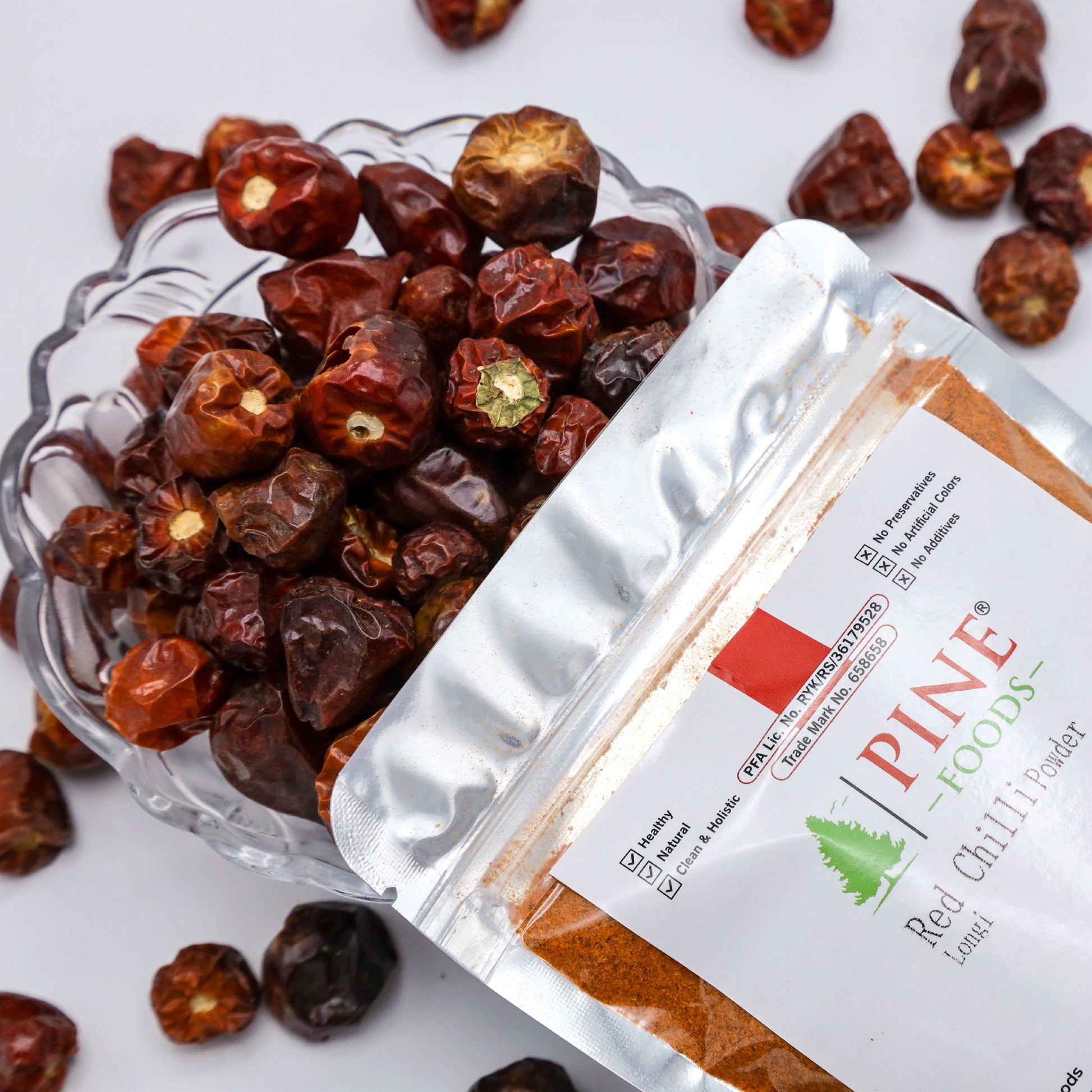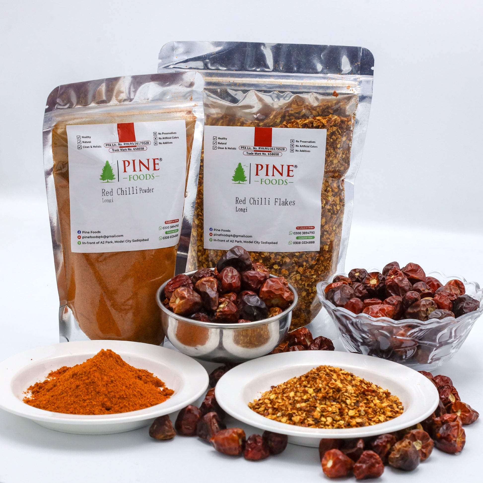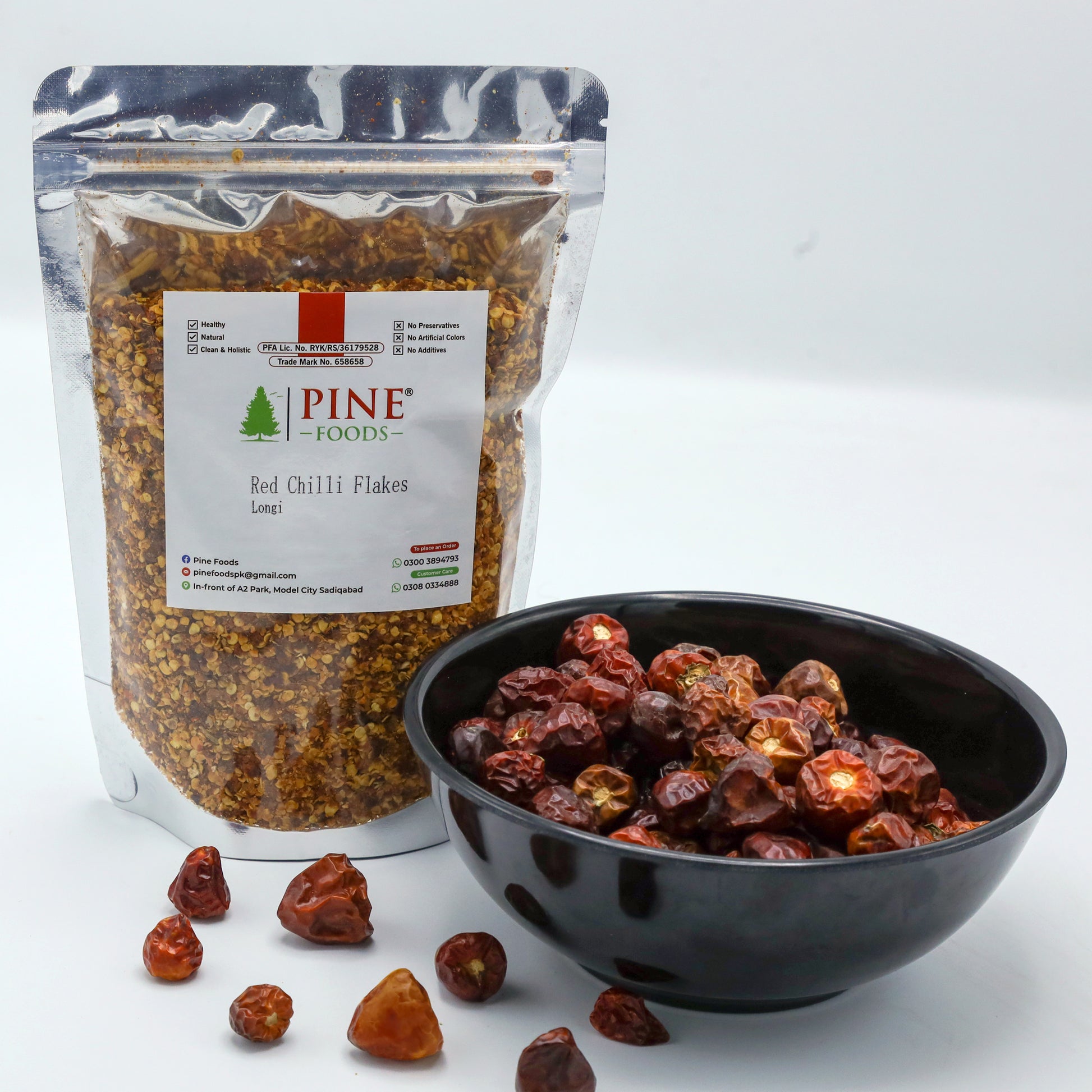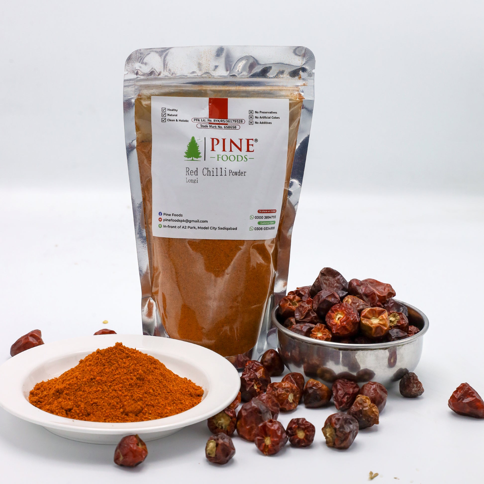 پائن فوڈز کی پیش کردہ سرخ مرچ پاکستان کے مشہور علاقے کنری، سندھ سے حاصل کی گئی ہے جو ملک کی 85٪ مرچوں کی پیداوار کا مرکز ہے۔ اس مرچ کی پہچان ہے اس کا چھوٹا سائز اور معتدل تیکھی مزاج۔